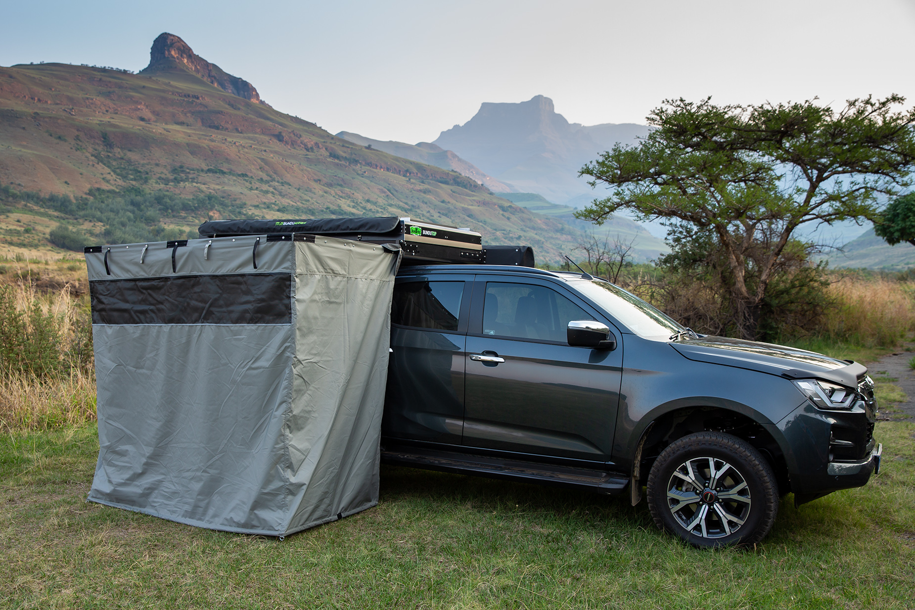 Unser BunduAnnex (zusätzlicher Raum) folgt den gleichen Produktrichtlinien – Benutzerfreundlichkeit. Er bietet einen privaten Eingang zu Ihrem Zelt und hält den Regen ab. Er hat oben auf jeder Seite Öffnungen, die aufgrund seiner Beschaffenheit nicht dauerhaft geschlossen werden können. Die Seitenwand, mit der es geschlossen wird, ist ein einfaches Design, das Privatsphäre und Belüftung bietet. Es wurde ausserdem so konzipiert, dass es leicht zu benutzen und abzunehmen ist. Es bietet keine luxuriösen Ausstattungen, sondern ein geradliniges Design, bei dem der Nutzen im Vordergrund steht.